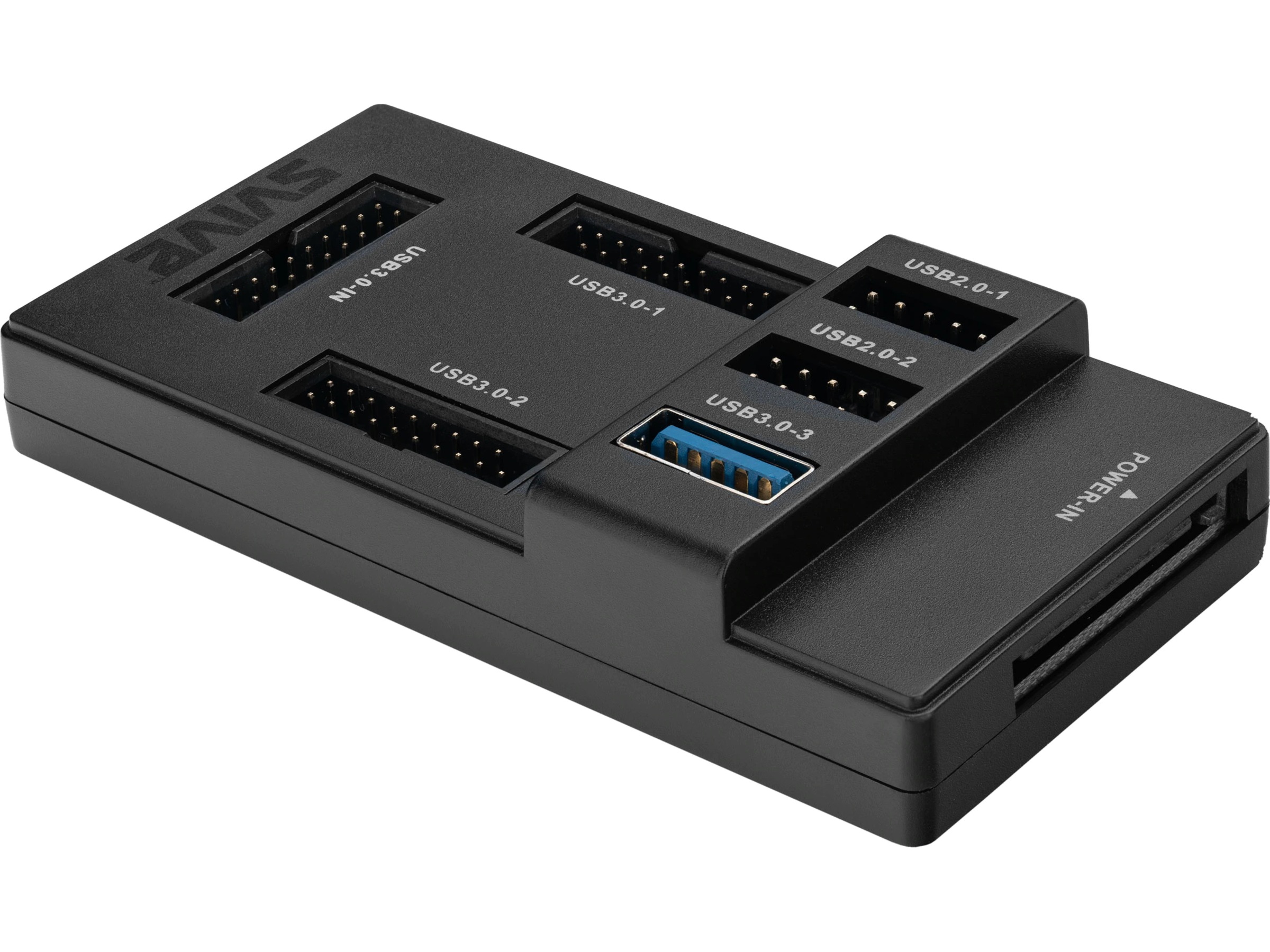 Stryg Halo USB Hub øger tilslutningsmulighederne til interne USB-porte. Boksen monteres indvendigt i kabinettet og udvider 1x USB 3.0-stik på bundkortet til: