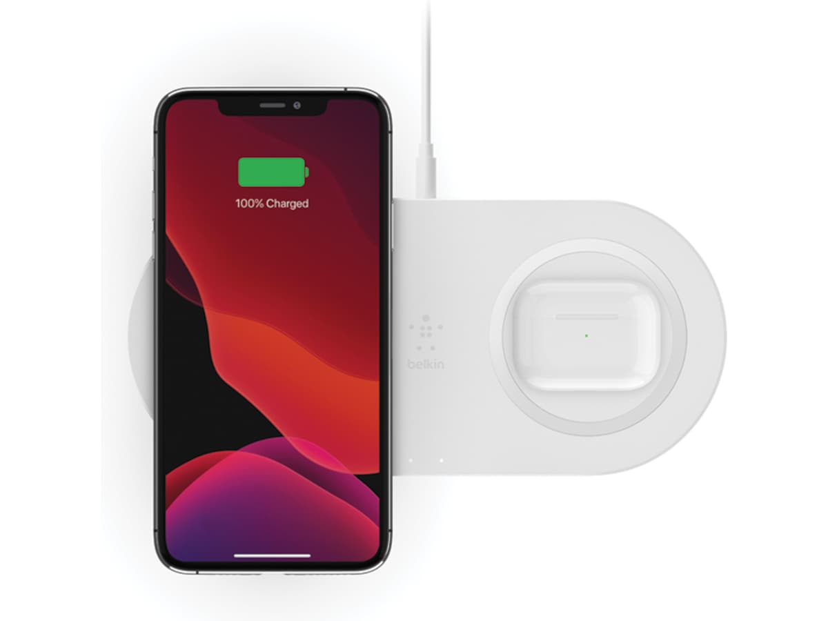- Med to 15 W opladerplader kan du oplade to enheder samtidig, hvilket er velegnet i opholdsrum eller til at oplade en mobiltelefon og trådløse øretelefoner, f.eks. AirPods, samtidig.