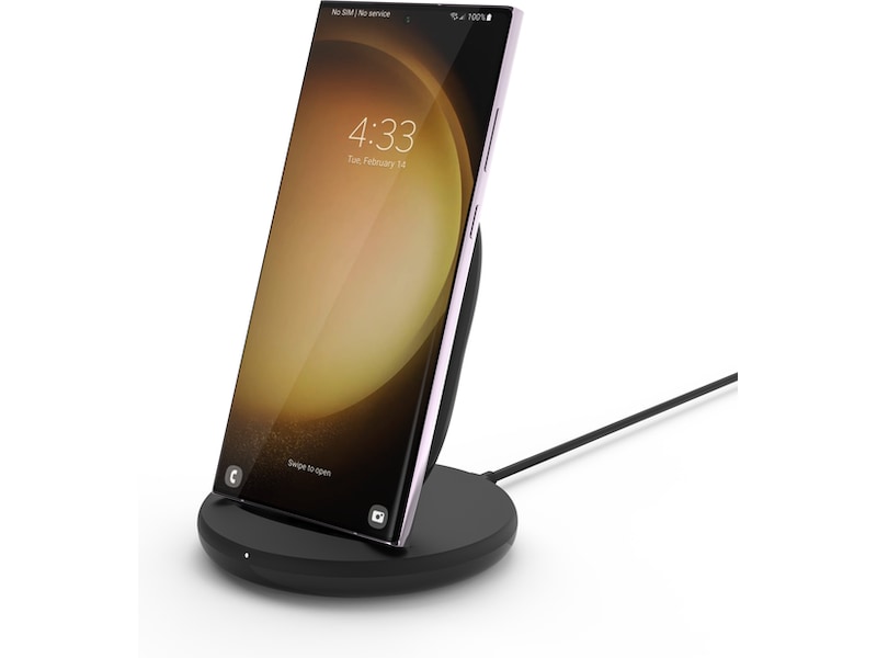 Qi™ godkendt trådløs opladerstand til at oplade Apple-, Samsung-, Google- og LG-smartphones sikkert og praktisk trådløst op til 15 W. Med denne elegante opladerstand i kompakt design er der intet ledningsrod i soveværelset, på kontoret eller i dagligstuen. Den har en skridsikker overflade, en lampe til indikering af rigtig opladeplacering stående eller liggende, og den leveres med 2 års garanti.