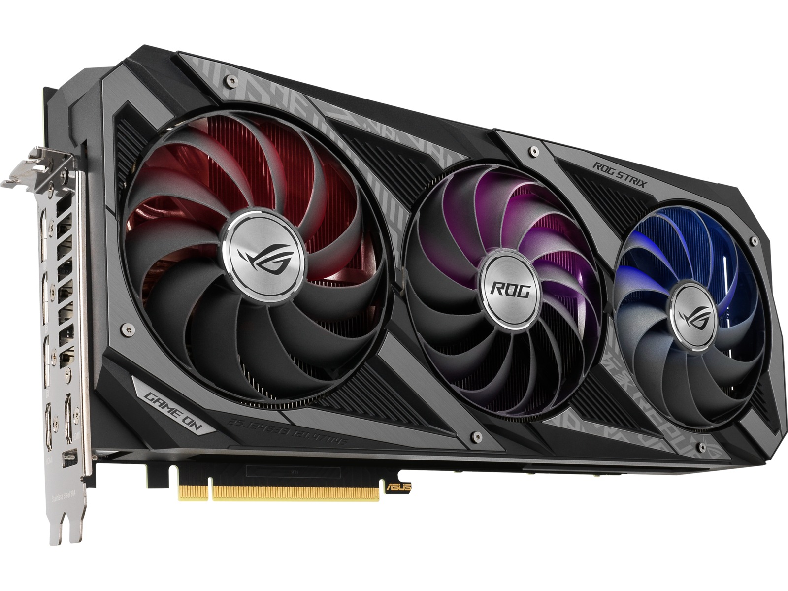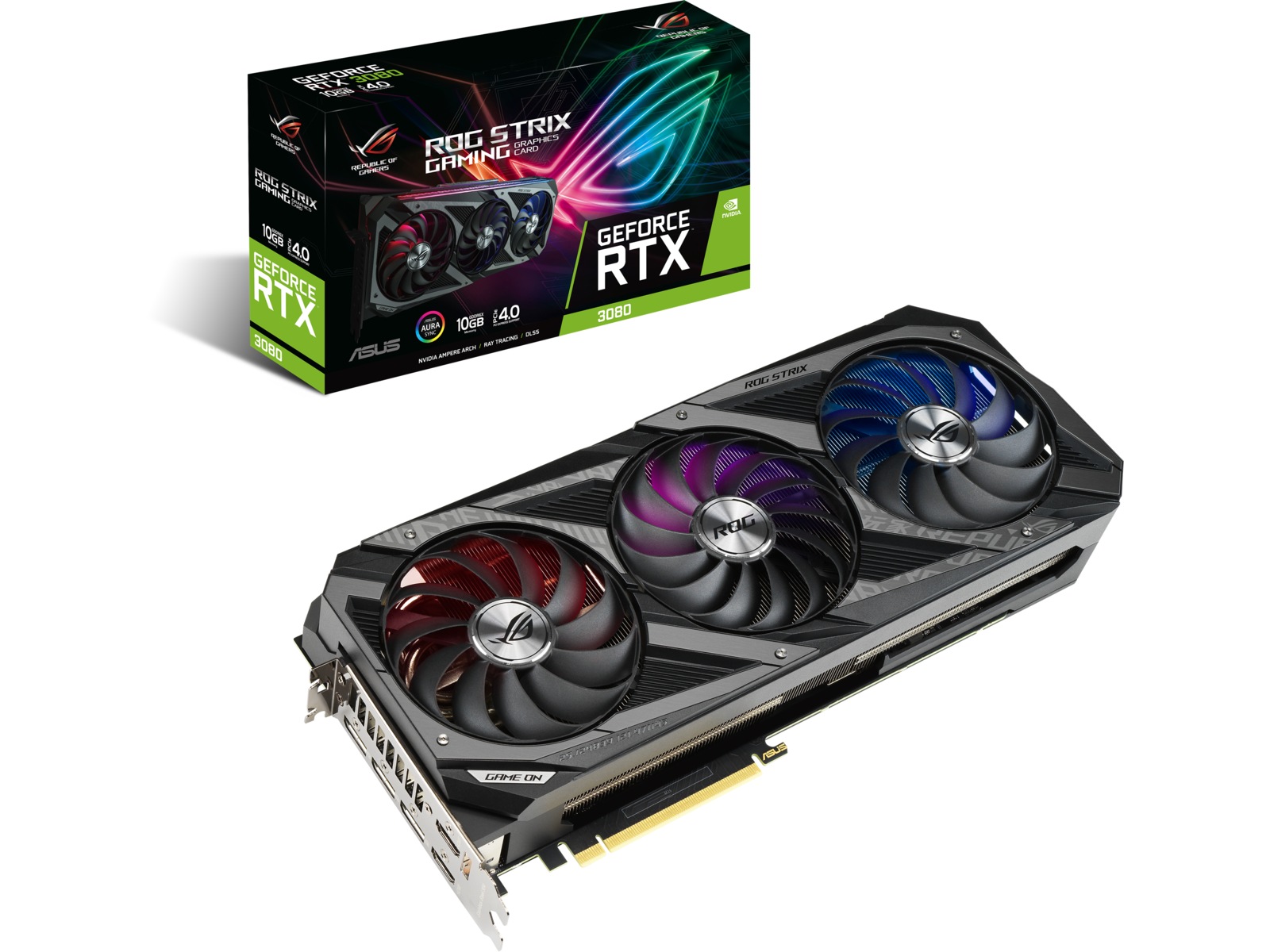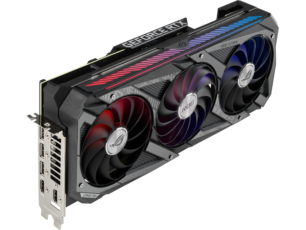 Fra top til bund er ASUS GeForce RTX 3080 ROG Strix forbedret radikalt for at imødekomme de imponerende nye Ampere-chips fra NVIDIA og for at levere den næste bølge af innovation inden for spilydelse til markedet. Et nyt design og mere metal omgiver en gruppe af Axial-tech fans. Sidste generations ensartede fanelayout er blevet toppet med et nyt rotationsskema og specialiserede roller for centrale og hjælpeblæsere. Under bladene er et større, mere imponerende kølelegeme klar til de mest krævende termiske belastninger. PCB'en har nogle nye tricks i ærmet, og selv bagpladen har fået nogle præstationsfremmende ændringer. Du har ventet på det nyeste og bedste inden for GPU-design - og her er det.