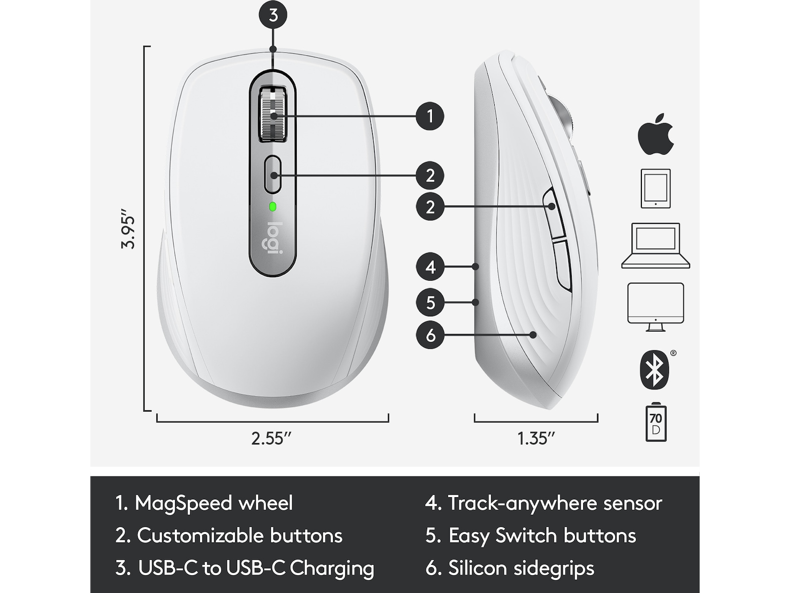 | Egenskaber | Logitech Flow, Silikonegreb, Logitech Darkfield Laser Tracking, Programmerbare knapper, MagSpeed-hjul |