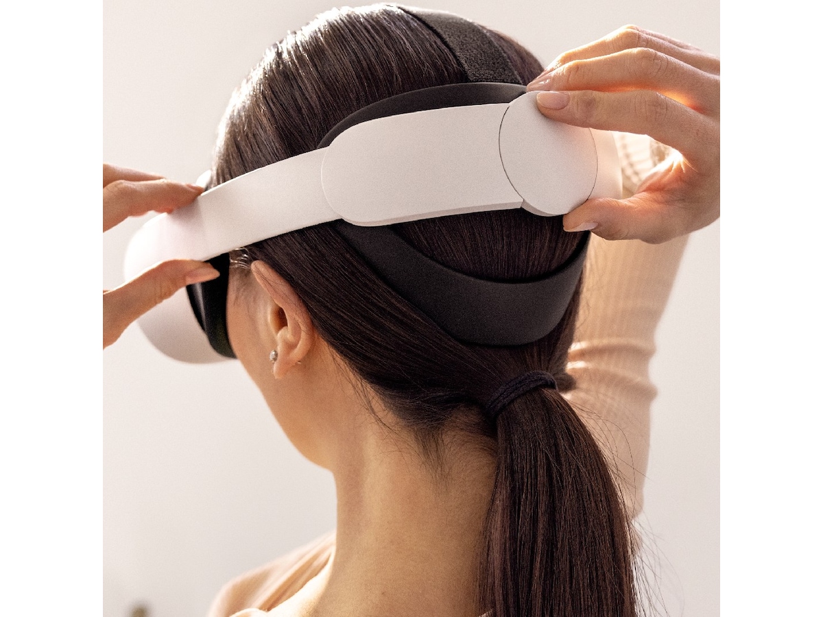 - Anstrengelsen reduceres med den bløde og fleksible komfortstrop, der omfavner brugerens baghoved og absorberer VR-brillernes vægt