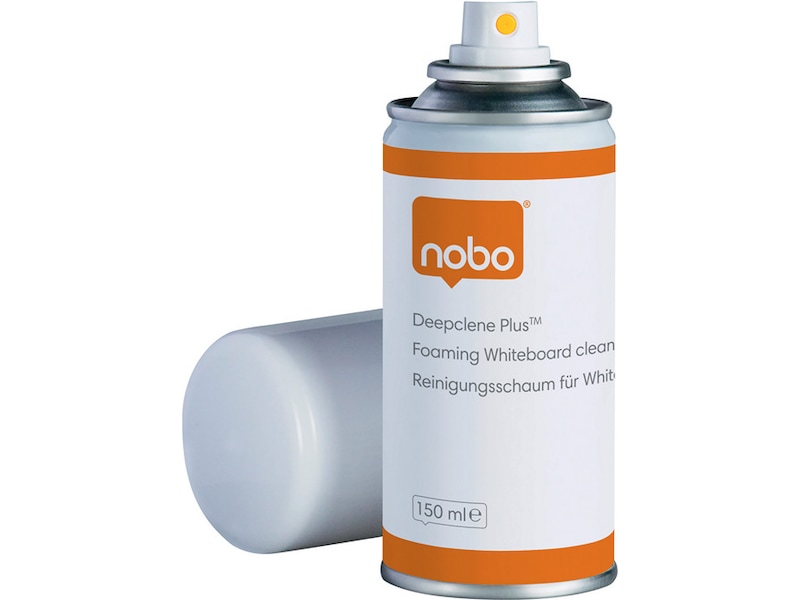 hvor whiteboardoverfladen ikke er vedligeholdt / Denne dybdegående rengøringsspray fjerner selv de mest stædige blækmærker og pletter inklusive permanent blæk. Denne aerosolskum rengøringsspray kan bruges på alle dry wipe overflader og sammen med andre Nobo whiteboard rengøringsprodukter for at vedligeholde din dry wipe overflade. Størrelse 150 ml