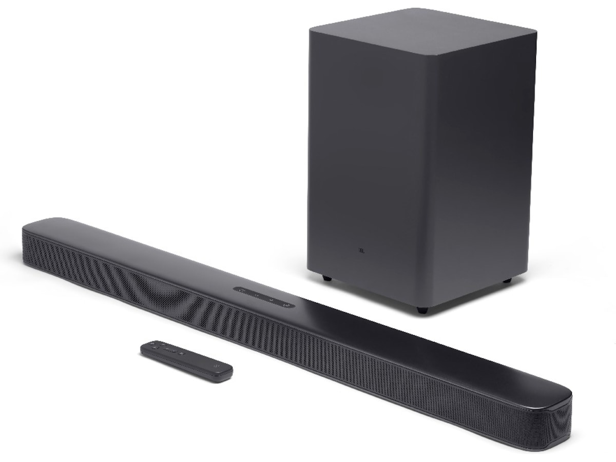 | Dimensioner (B x D x H) / Vægt detaljer | Lydbar: 96.5 cm x 6.8 cm x 5.8 cm / 1.9 kg, Subwoofer: 22.5 cm x 22.5 cm x 37 cm / 5.2 kg |