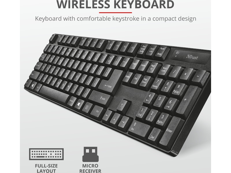 • Trådløst tastatur i fuld størrelse med behageligt tastetryk i et kompakt design