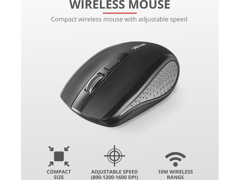 • Kompakt trådløs mus med justerbar hastighed (800-1200-1600 DPI)