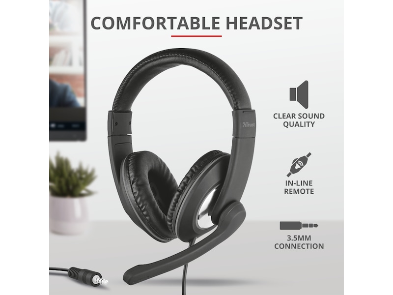 • Polstret og behageligt over-ear headset med justerbart hovedbånd