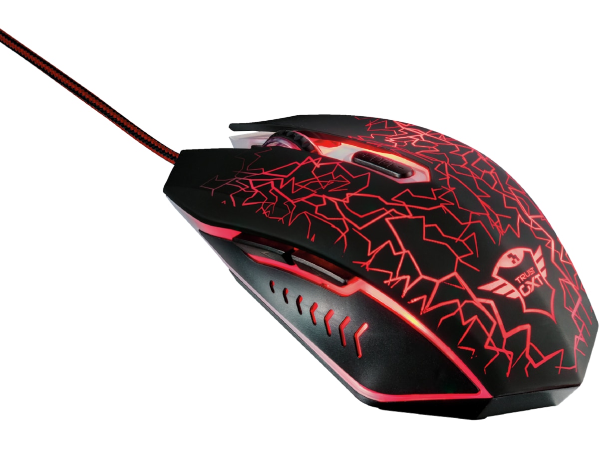 - Mus med unikt LED-design, 6 knapper, tohåndet form og 1,8 m flettet kabel