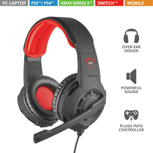 Hører du jungeltromlerne? Trust GXT 310 Radius Gaming Headset er din gateway til den brølende verden af spil. Dette headset har skarp surroundlyd, så du altid vil være et skridt foran dine fjender. Uanset om du slutter dit headset til din PC, laptop eller konsol, er du på vej til at sejre!