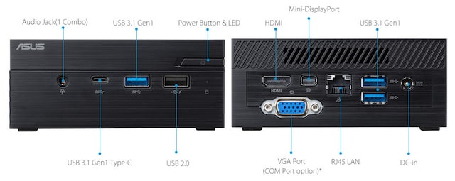 ASUS Mini PC PN40 kommer med en omfattende samling af porte, herunder en USB 3.1 Gen 1 Type-C-port og tre USB 3.1 Gen 1-porte til hurtig dataoverførsel samt HDMI- og Mini DisplayPort for tilslutning til skærme.