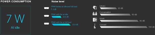 ASUS Mini PC PN40 har et energieffektivt design som reducerer enhedens miljømæssige aftryk og holder omkostningerne nede til fordel for virksomheden. ASUS Mini PC'er har nogle af industriens højestrangerede bæredygtighedscertifikater, herunder Energy Star®. Mini PC PN40 forbruger så lidt som 6,4W, når den kører tomgang og er ekstremt stille med et støjniveau på kun 20,6 dB. Den kommer også i en blæserløs-version, som er fuldstændig stille, uanset arbejdsopgave.