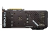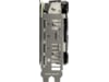 Undersiden af kortet afslører en række forbedringer. Det meste af bagsiden er skåret i en beskyttende metalbagplade, der gør sig bemærket med en bred udluftning. Udluftningen tillader, at varm luft slipper ud mod chassisets udstødningsventilatorer i stedet for at blive genanvendt tilbage i GPU-køleren. Under GPU'en giver et beslag ensartet monteringstryk mellem matricen og varmesprederen. Rustfrit stål bruges til I/O-beslaget for at beskytte porte og give en mere sikker montering. En praktisk placeret Dual Bios-switch muliggør tilpasning af kortets standardydelsesprofil uden software.