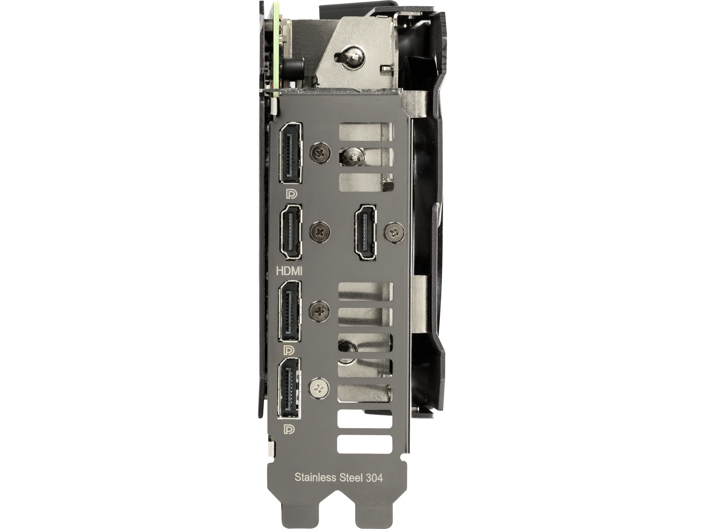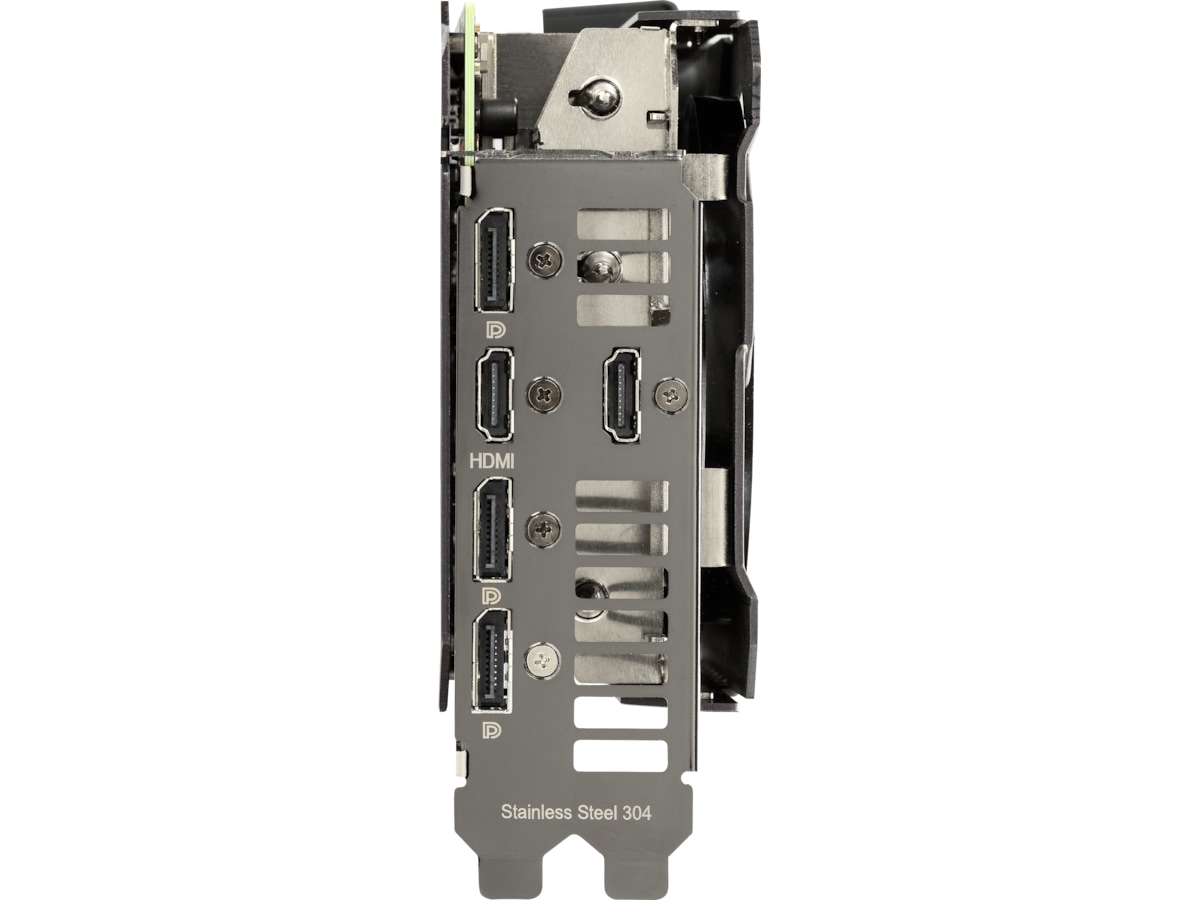 RGB-elementet på toppen kan tilpasses med Armory Crate og synkroniseres med andre ASUS-komponenter for at muliggøre ensartet belysning. For at opfylde strømkravene til GeForce RTX 3080 er der to 8-polede strømstik til stede sammen med et indbygget kredsløb, der overvåger PSU-skinnespænding.