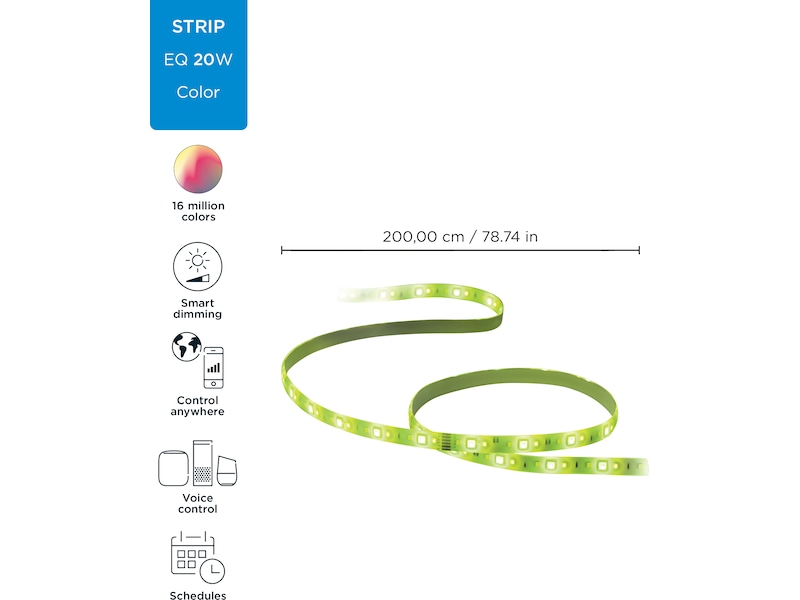Lad dig fascinere af komforten og belejligheden af Circadian Rhythm funktionen, der følger lysets naturlige mønster og skaber en glidende overgang fra klart dagslys til dæmpede varme toner af hvid, så din belysning hjælper dig til en forøget følelse af velvære. Og oplev hvordan dynamiske lysfunktioner bader dit hjem i smukke flerfarvede lyseffekter, der eksempelvis reflekterer havet eller en glødende kamin, og som skaber en fortryllende stemning til alle hverdagens øjeblikke. Denne startpakke indeholder en 2 meter lang LED strip, der kan forlænges op til 10 meter med en-meters forlængeren (sælges separat).