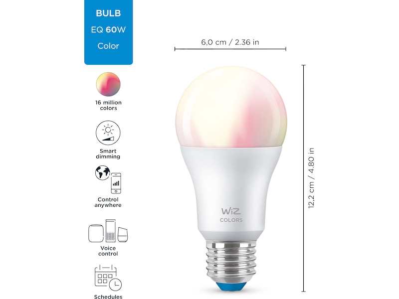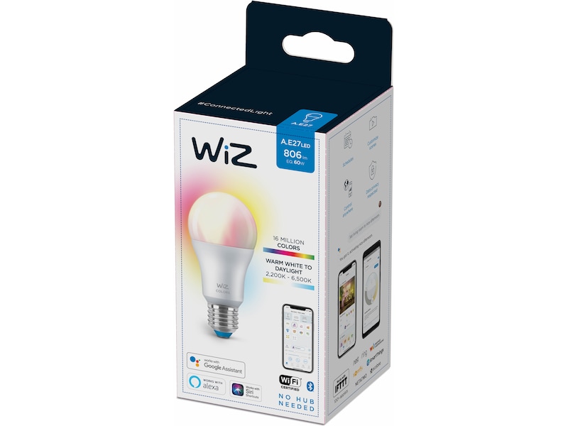 Få dit hjem til at funkle med strålende farverig stemningsbelysning med serien af WiZ full color intelligente pærer. Med denne A60 pære kan dine lamper med E27 fatninger lyse i 16 millioner farver og med den helt rette lystemperatur, så du endelig får LED belysning i fantastisk høj kvalitet, som du fortjener.