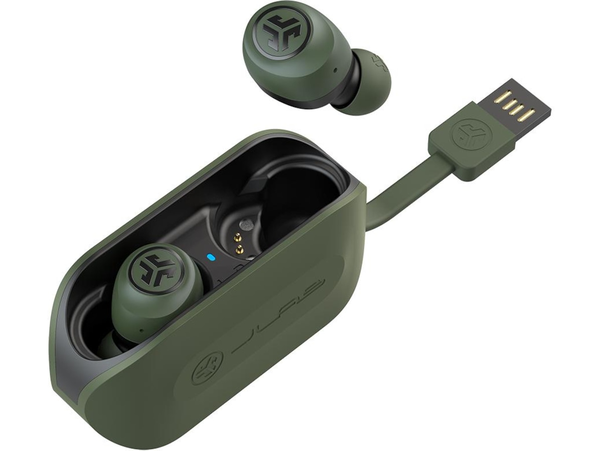Go Air er 20% mindre end JBuds Air. Dette betyder en slankere profil, perfekt til mindre ører. En længere øreprop giver en mere behagelig pasform i øret, hvilket skaber en perfekt tætning for krystalklar lyd. Lommevenligt etui har et integreret opladerkabel, når du er på farten
