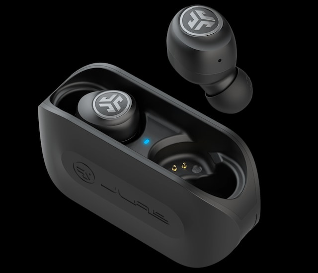 Go Air er 20% mindre end JBuds Air. Dette betyder en slankere profil, perfekt til mindre ører. En længere øreprop giver en mere behagelig pasform i øret, hvilket skaber en perfekt tætning for krystalklar lyd. Lommevenligt etui har et integreret opladerkabel, når du er på farten