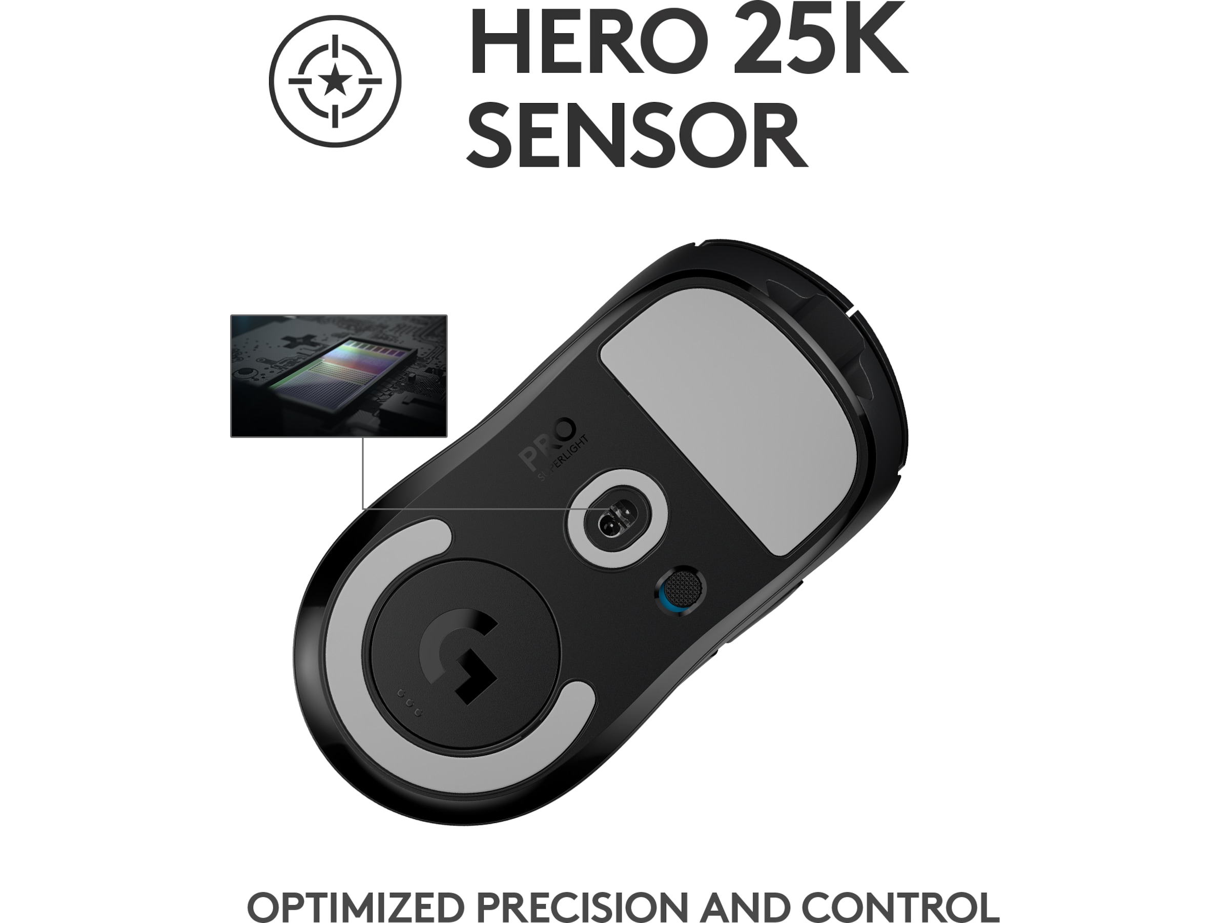 | Egenskaber | LIGHTSPEED-teknologi, ARM 32-bit processor, HERO sensor, Polytetrafluoroethylene (PTFE) feet |
