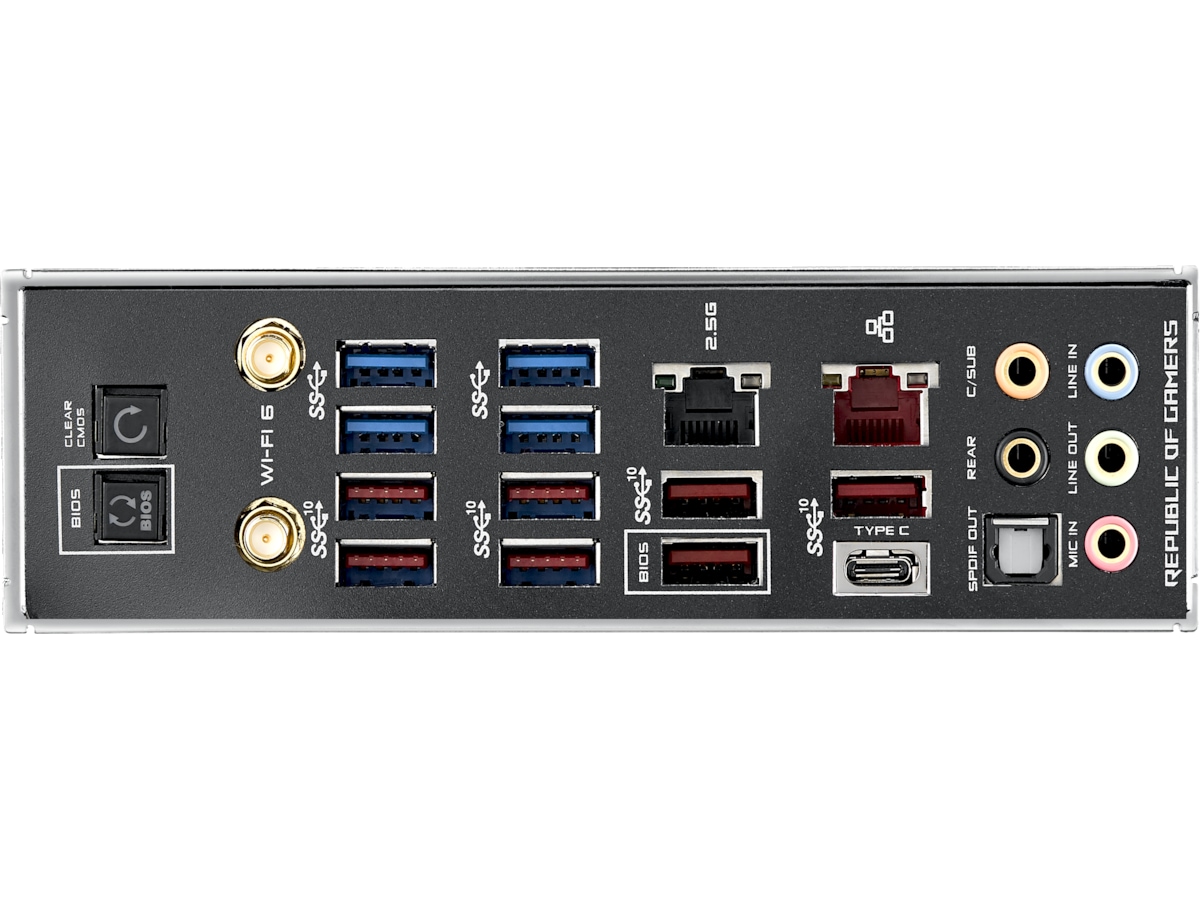 - Højtydende netværk: On-board Wi-Fi 6 (802.11ax) med MU-MIMO support, 2.5 Gbps Ethernet og Gigabit Ethernet, begge med ASUS LANGuard-beskyttelse og support til GameFirst VI software.