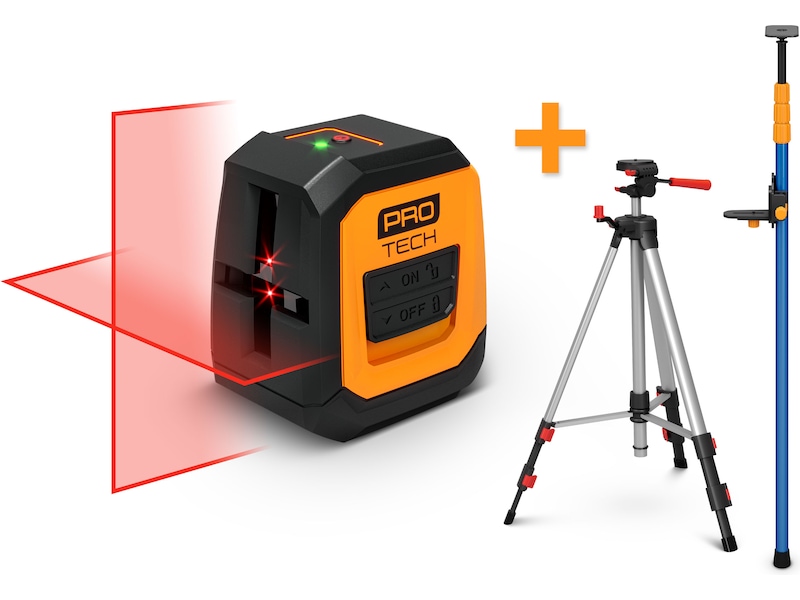 Protech Cross Laser projicerer sine linjer med stor nøjagtighed på op til ± 0,5 mm/m og sørger for, at begge linjer er præcist nivelleret og lige, hvor du vil have dem. Det tilbyder et arbejdsområde på 10 meter, der hjælper dig med enhver nivelleringsopgave over korte afstande.