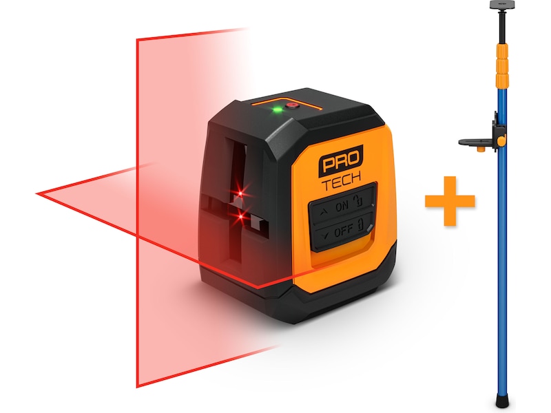 Protech Cross Laser projicerer sine linjer med stor nøjagtighed på op til ± 0,5 mm/m og sørger for, at begge linjer er præcist nivelleret og lige, hvor du vil have dem. Det tilbyder et arbejdsområde på 10 meter, der hjælper dig med enhver nivelleringsopgave over korte afstande.