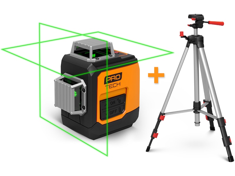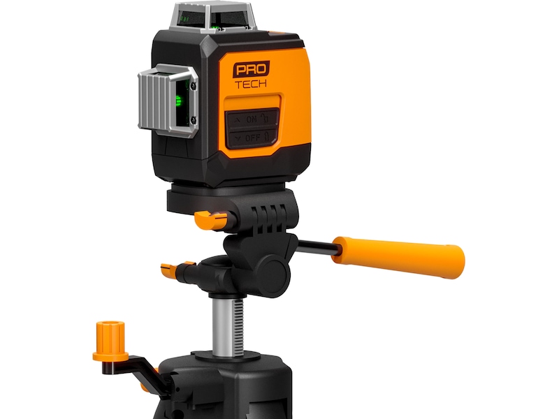 Protech 360° Cross Leveler projicerer sine linjer med stor nøjagtighed på op til ± 0,5 mm/m og sørger for, at begge linjer er præcist nivelleret og lige, hvor du vil have dem. Det tilbyder et arbejdsområde på 20 meter, og dets grønne laser giver dig høj synlighed under alle slags forhold.