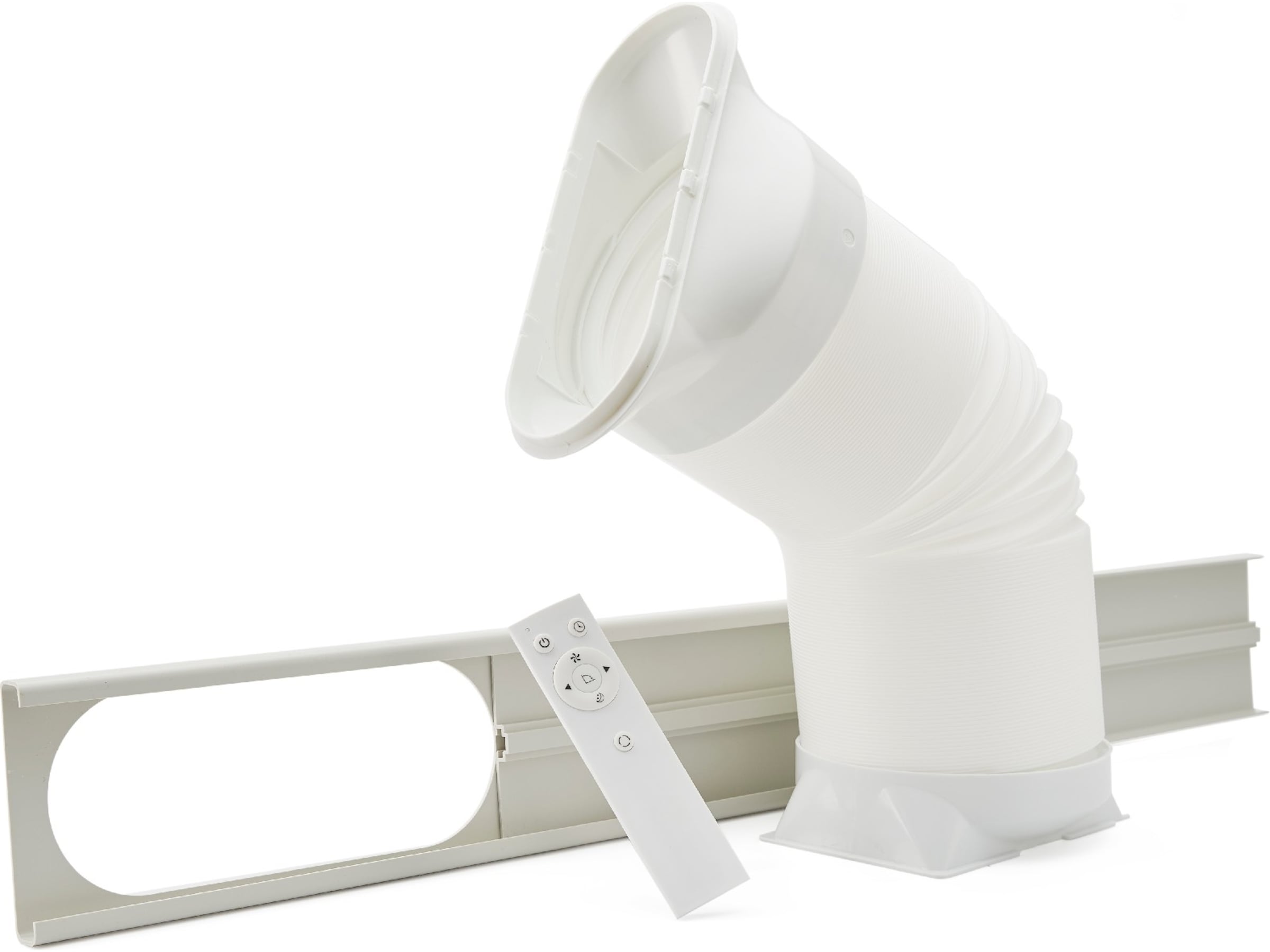 De robuste hjul gør det nemt at flytte enheden, hvor den passer bedst lige nu. Med det medfølgende vinduesæt kan du forbinde enheden direkte til vinduet og derfor undgå at bore huller i væggen.