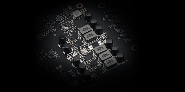Robuste kondensatorer er nøje udvalgt til kortets strømdesign. De og andre komponenter er loddet til PCB'en med vores avancerede automatiske Auto-Extreme-produktionsproces. Præcise elementer og eliminering af menneskelige fejl sikrer, at hvert grafikkort opfylder vores strenge specifikationer. Derudover, for at sikre en fejlfri ydeevne når det virkelig gælder, udsættes kortene for en udmattende 144-timers valideringsforsøg.