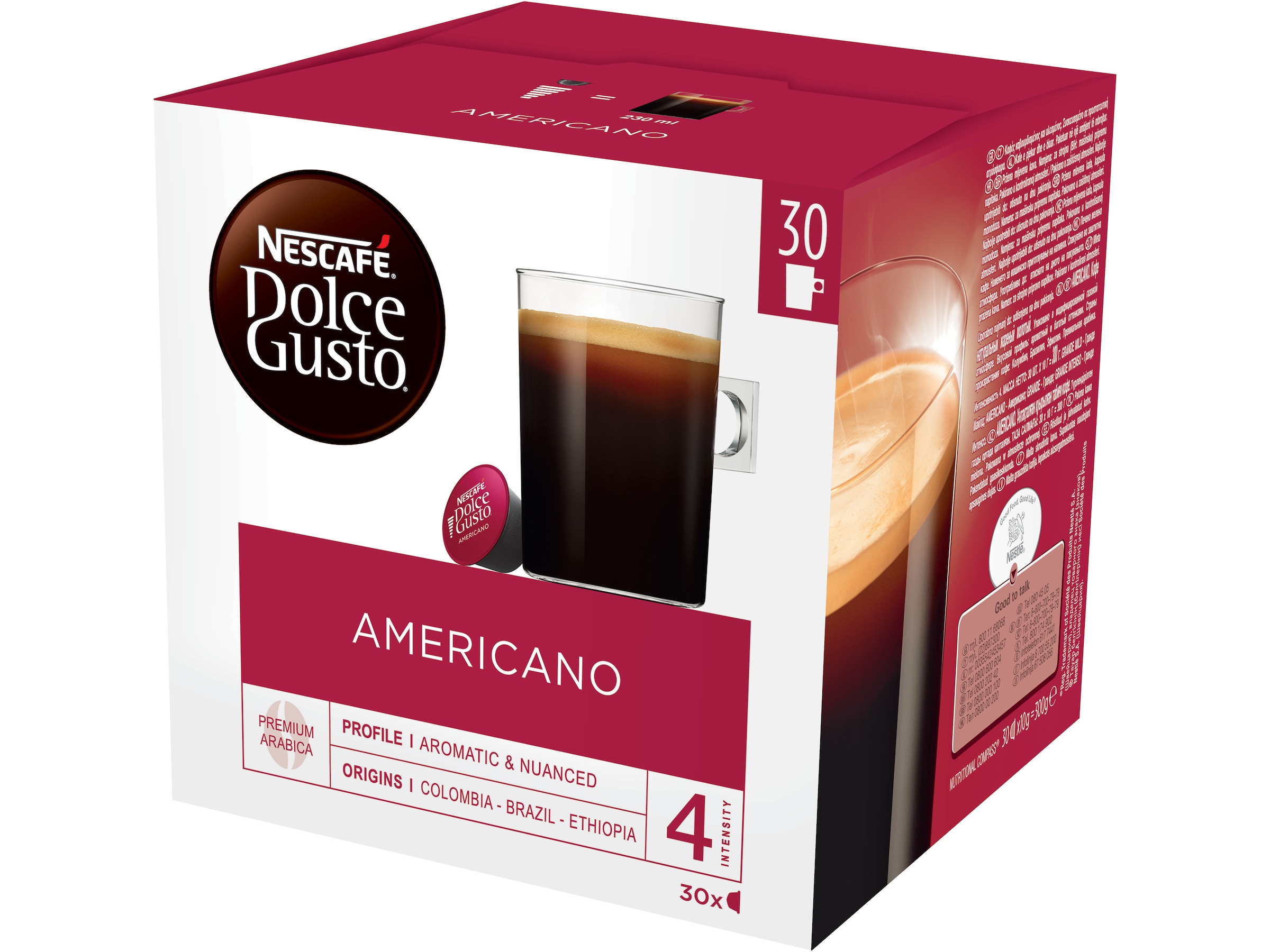 Prøv NESCAFÉ® Dolce Gusto® Americano, en 100% Arabica-kaffe med en intensitet på 4 ud af 11. Den store kop på 230 ml indeholder en elegant kaffe med noter af frugt og blomster, har en let krop og en fin crema.