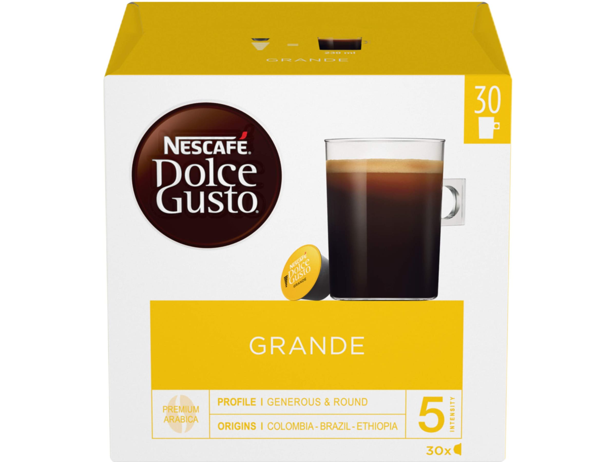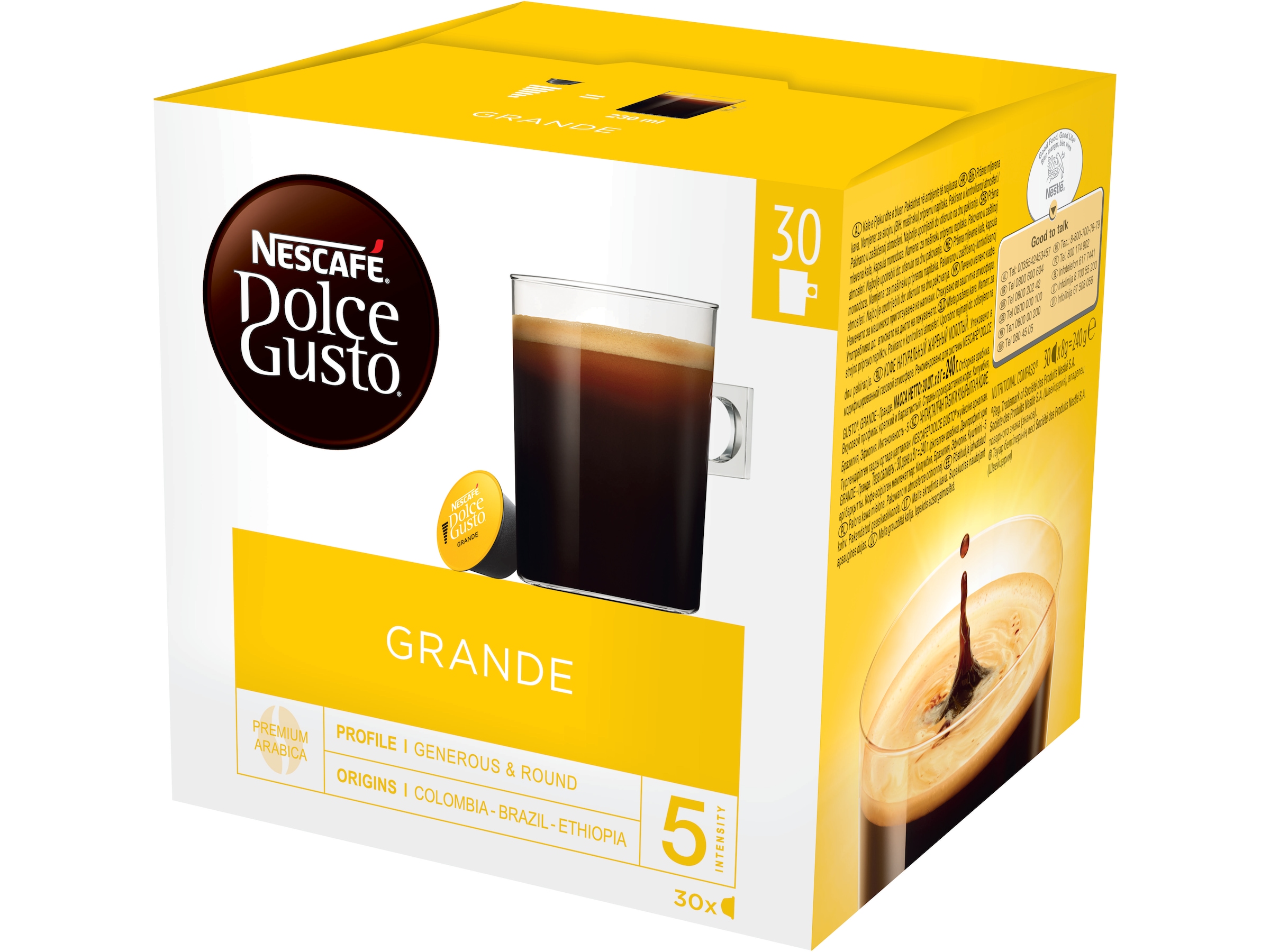 Nescafé Dolce Gusto Grande Big Pack er en stor kasse kaffe til din Zoégas Dolce Gusto-maskine. Denne æske indeholder 30 kapsler Zoégas Grande, en premium blanding af Arabica bønner fra de bedste kaffefarme. Grande giver en fyldig og rund smag. Kapslerne er nemme at bruge og giver dig en perfekt espresso hver gang.