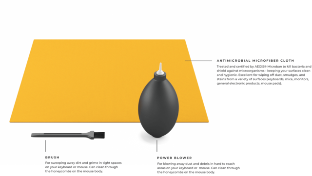 Glorious Cleaning Kit giver dig væsentligt tilbehør, der hjælper dig med at rengøre og vedligeholde dit mekaniske tastatur, din gamingmus og andre PC-perifere enheder - hvilket holder dine produkter i perfekt tilstand.