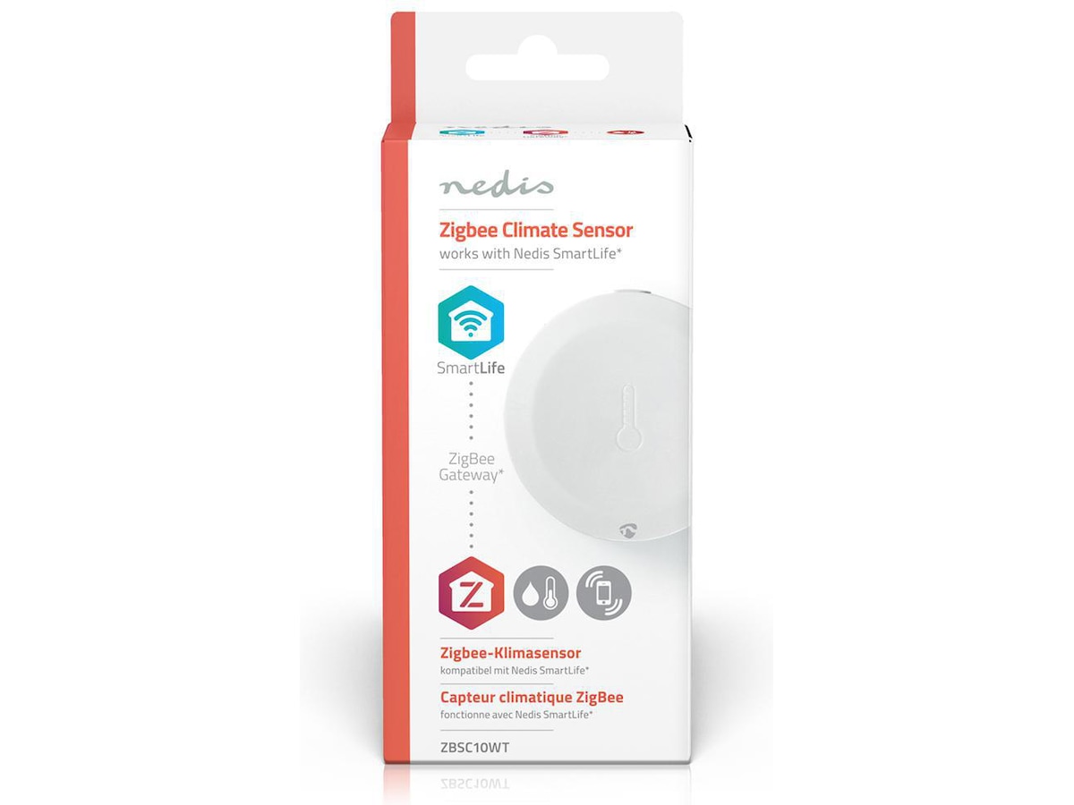 Denne smarte klimasensor måler både stuetemperatur (0-40°C) og fugtighed (0-95%) i luften og sender disse oplysninger til din Nedis SmartLife-app. En Nedis Zigbee-gateway er nødvendig til dette.