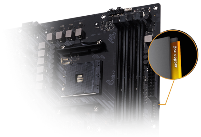 2-ounce kobberlag trækker varmen væk fra kritiske komponenter for at holde dem på deres optimale driftstemperaturer og leverer mere frihøjde til at skubbe CPU´er ud over lagerhastigheder.