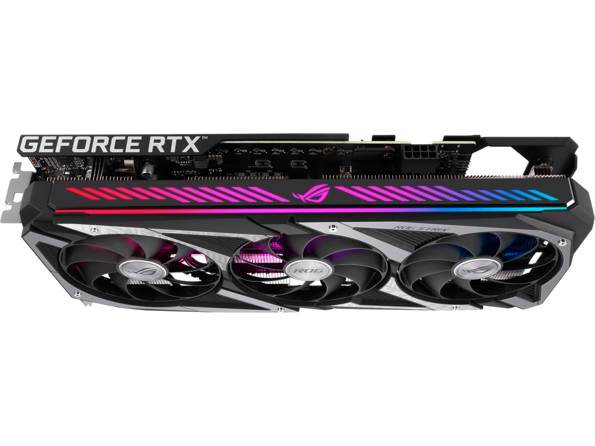 Der er tænkt over detaljerne på GPU'ens front, da det er den side, som er mest synlig i de fleste builds. Et nyt tilgængeligt RGB-element kan tilpasses via Armoury Crate, så du let kan skabe et uniformt udseende med dine andre ROG-komponenter. For at opfylde strømkravene til GeForce RTX 3060 er der en 8-pin strømstik til stede sammen med et indbygget kredsløb, der overvåger PSU-spændingen. Kredsløbet er hurtigt nok til at fange transienter, der resulterer i, at spændingen bliver for lav. Hvis dette sker, vil en rød LED lyse for at indikere et strømforsyningsproblem.
