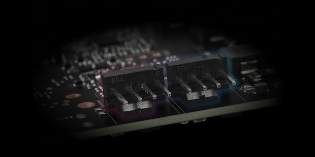 Bagsiden af ROG Strix-grafikkortet har to PWM FanConnect-headere, der giver yderligere DIY-fleksibilitet. Chassisblæsere kan tilsluttes direkte til GPU'en og indstilles med en kurve, der er baseret på CPU- eller GPU-temperaturer, hvilket giver ekstra indtag eller udstødning til krævende 3D-opgaver.