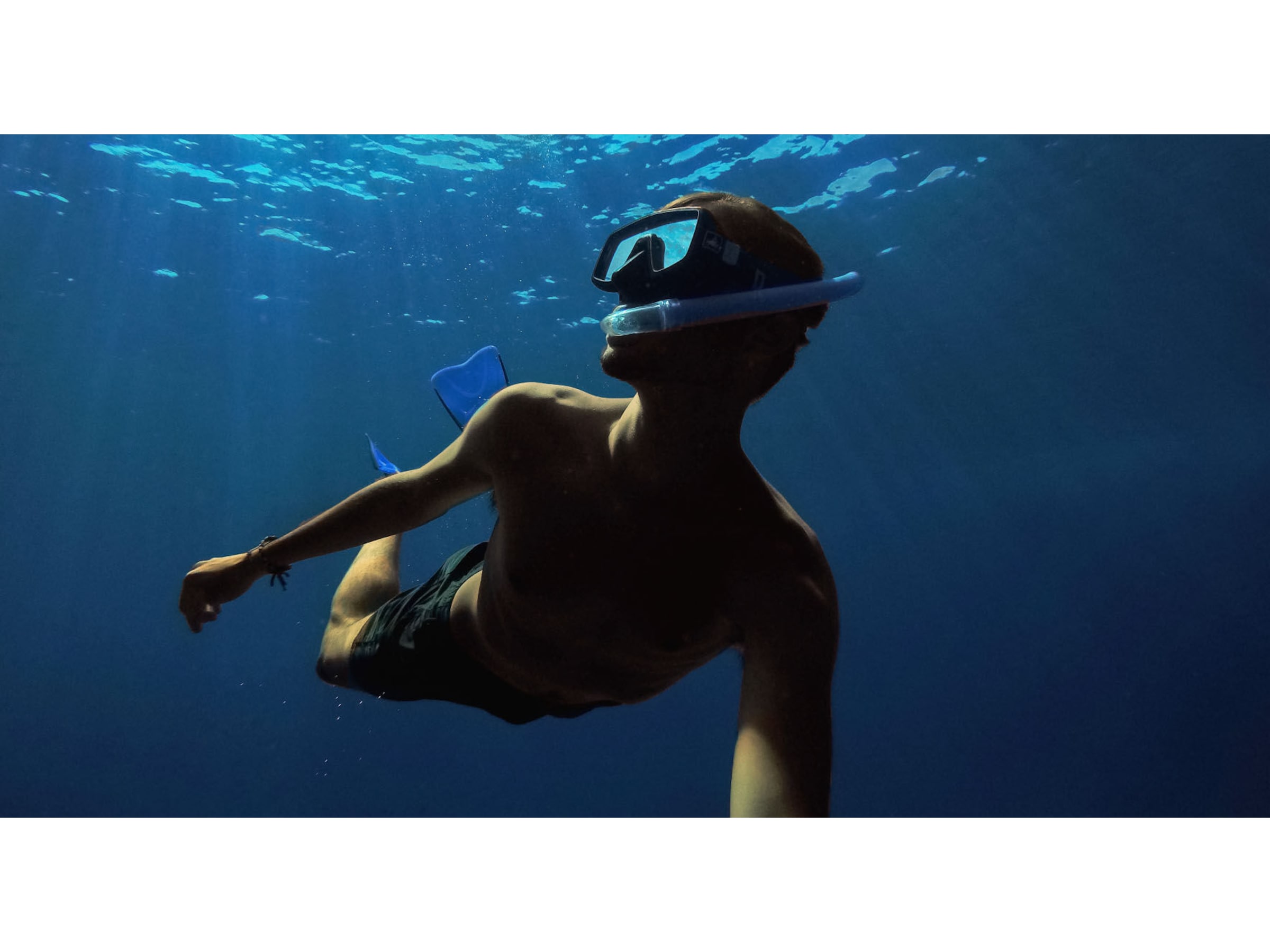- Et fladt glasobjektiv giver skarpe billeder af høj kvalitet over og under vand