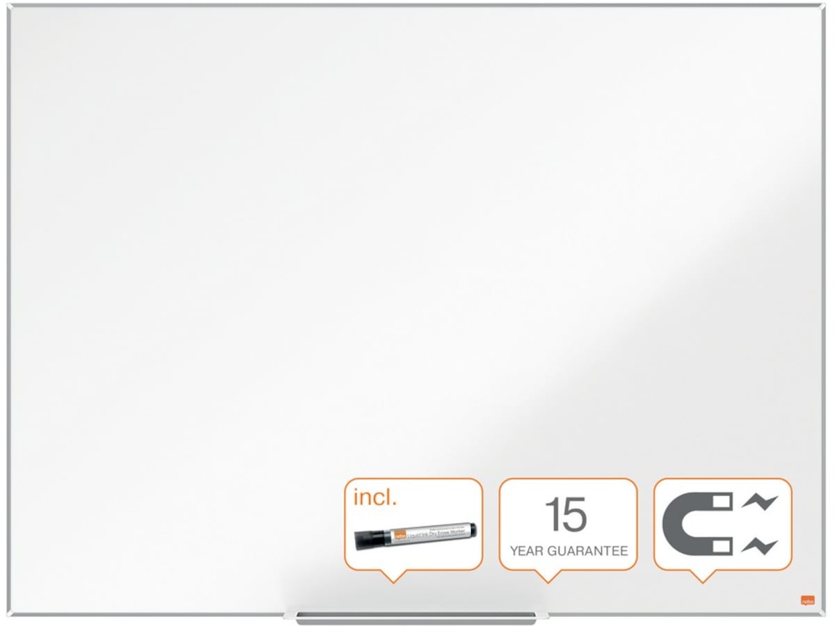 Nano Clean™ stål magnetisk whiteboard med tidssvarende smal og diskret ramme, der giver en mere tilgængelig og optimal skriveoverflade.