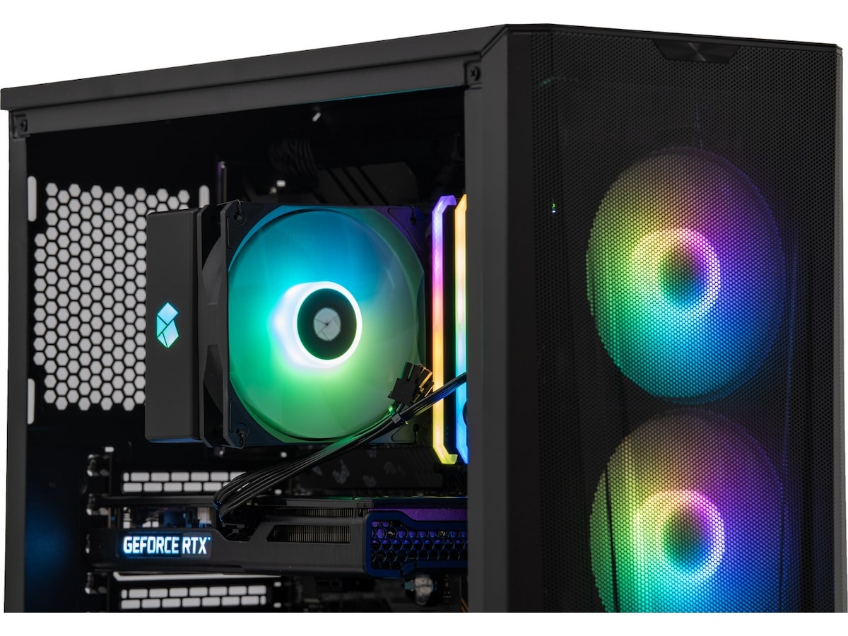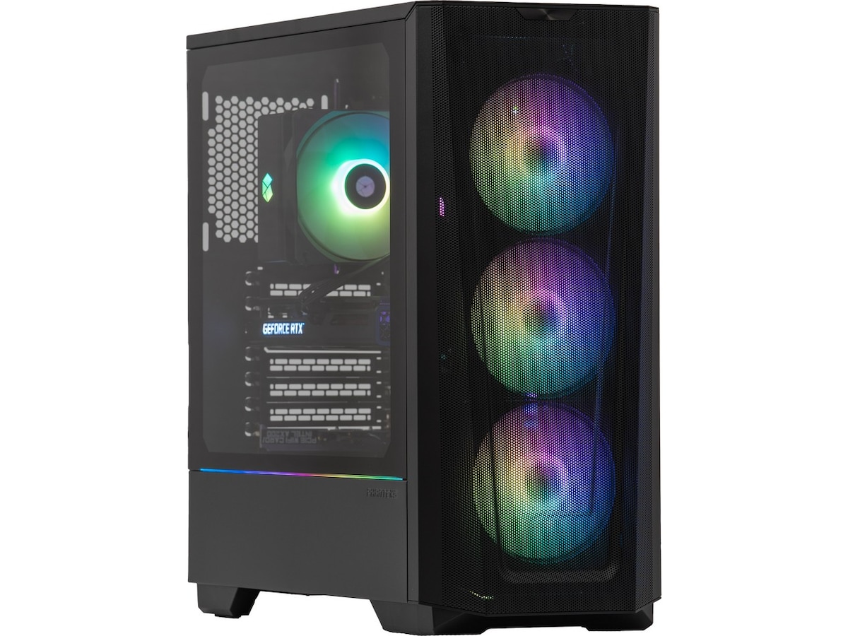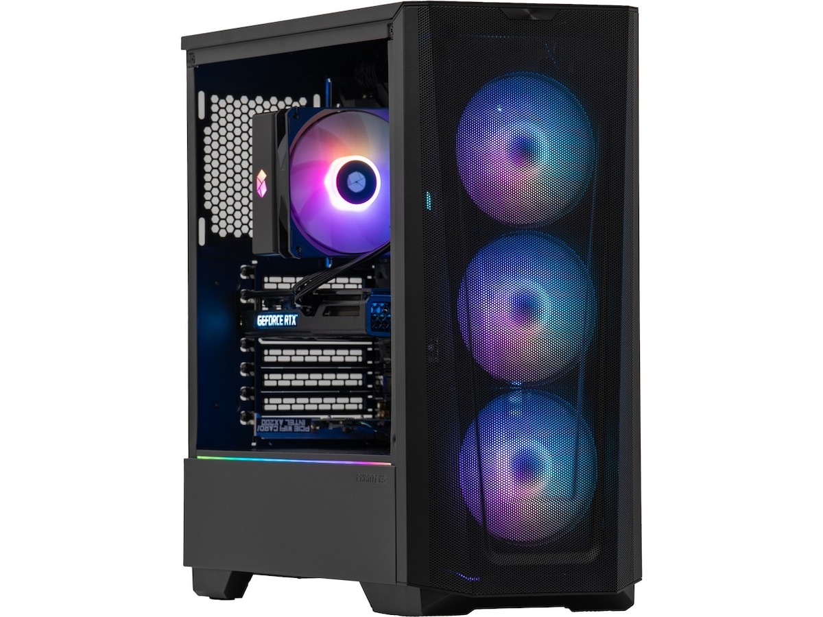 Hvis du vil have en farverig gaming-pc, der giver dig mulighed for at spille alle spil uden problemer, anbefaler vi Komplett a135 Epic Gaming PC. Med det livlige grafikkort RTX 3060 fra NVIDIA er du sikret fantastiske spiloplevelser. Kabinettet er stilrent og enkelt, og glasset på siden giver dig mulighed for at lyse rummet op med fantastisk RGB-belysning.