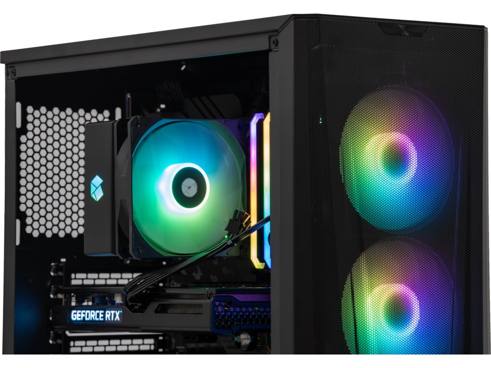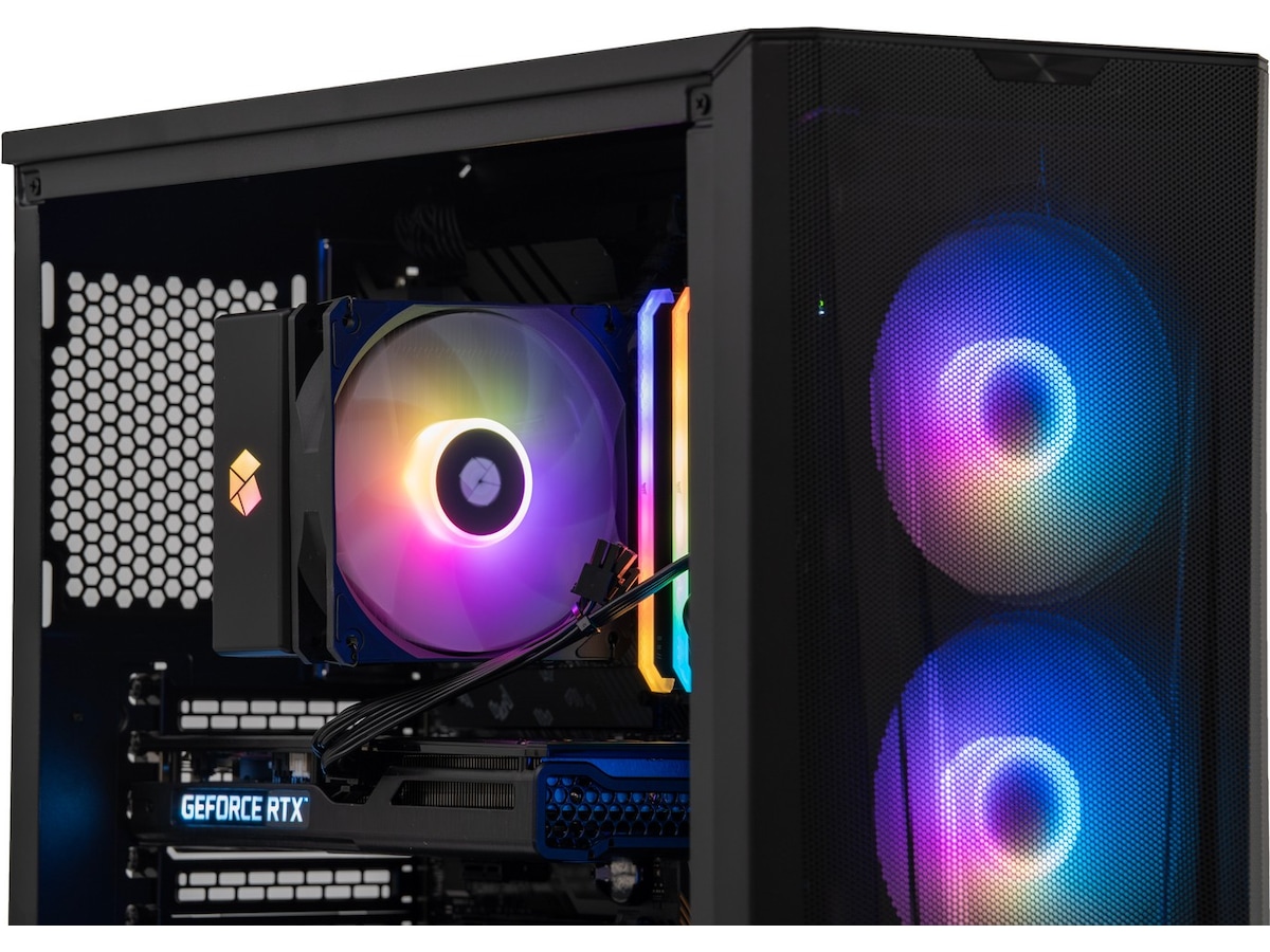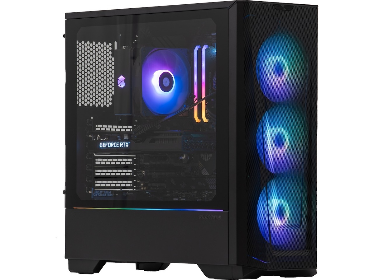 Hvis du vil have en farverig gaming-pc, der giver dig mulighed for at spille alle spil uden problemer, anbefaler vi Komplett a135 Epic Gaming PC. Med det livlige grafikkort RTX 3060 fra NVIDIA er du sikret fantastiske spiloplevelser. Kabinettet er stilrent og enkelt, og glasset på siden giver dig mulighed for at lyse rummet op med fantastisk RGB-belysning.