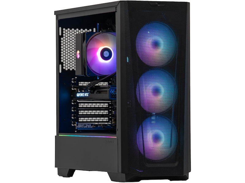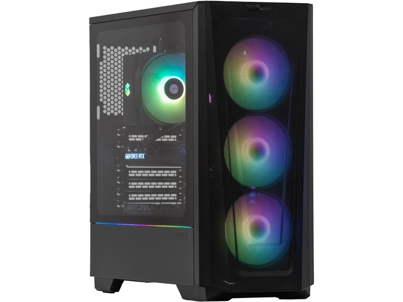 Hvis du vil have en farverig gaming-pc, der giver dig mulighed for at spille alle spil uden problemer, anbefaler vi Komplett a135 Epic Gaming PC. Med det livlige grafikkort RTX 3060 fra NVIDIA er du sikret fantastiske spiloplevelser. Kabinettet er stilrent og enkelt, og glasset på siden giver dig mulighed for at lyse rummet op med fantastisk RGB-belysning.