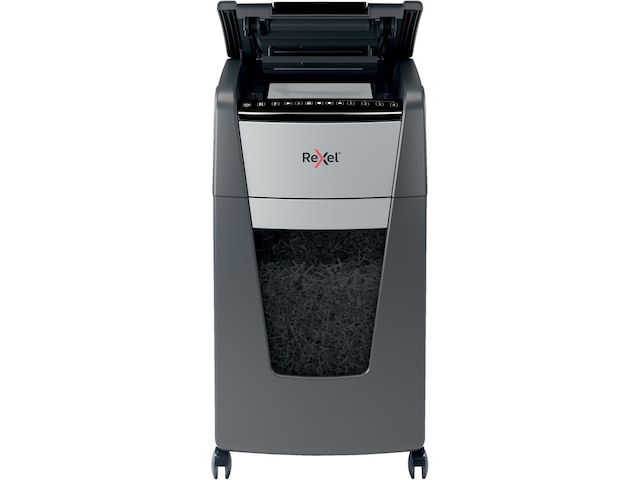 Du behøver ikke at indføre papirer manuelt eller fjerne hæfteklammer eller papirclips – bare ilæg hele papirstakken i maskinen, og den makulerer det hele automatisk. Du slipper altså for at føre et par ark i maskinen ad gangen. Men hvis du blot har et par få ark, som skal makuleres, kan du blot putte det i den manuelle indføring. På denne måde kan maskinen makulere 10 ark ad gangen (80g).