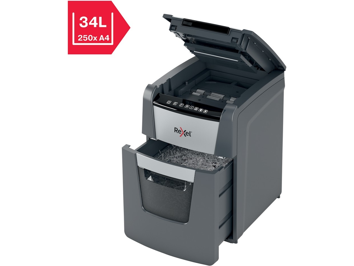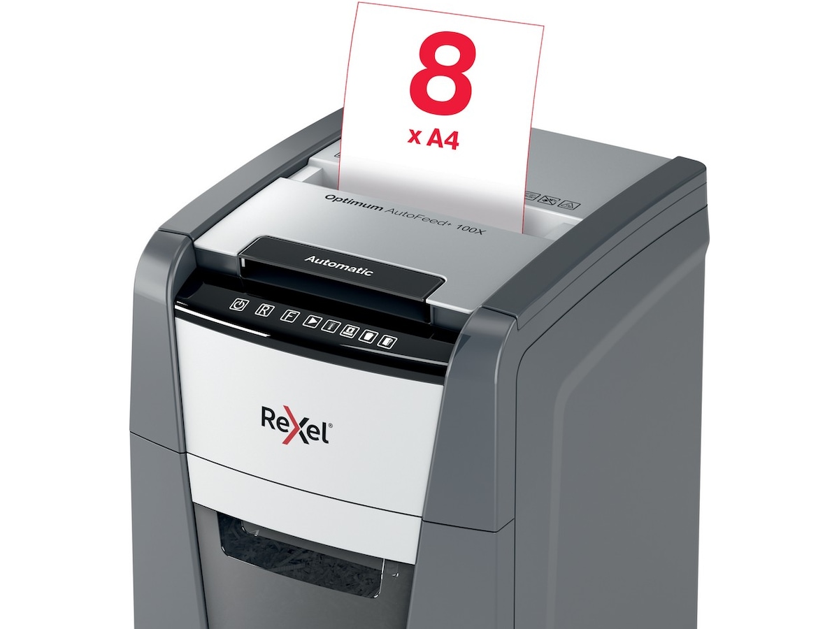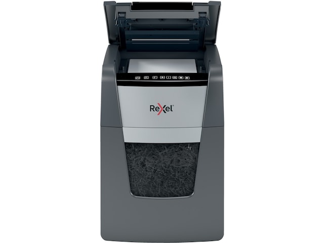 Du behøver ikke at indføre papirer manuelt eller fjerne hæfteklammer eller papirclips – bare ilæg hele papirstakken i maskinen, og den makulerer det hele automatisk. Du slipper altså for at føre et par ark i maskinen ad gangen. Men hvis du blot har et par få ark, som skal makuleres, kan du blot putte det i den manuelle indføring. På denne måde kan maskinen makulere 8 ark ad gangen (80g).