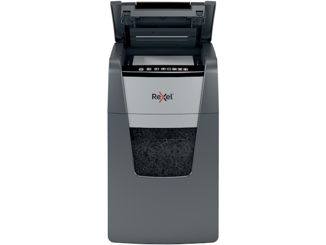 Du behøver ikke at indføre papirer manuelt eller fjerne hæfteklammer eller papirclips – bare ilæg hele papirstakken i maskinen, og den makulerer det hele automatisk. Du slipper altså for at føre et par ark i maskinen ad gangen. Men hvis du blot har et par få ark, som skal makuleres, kan du blot putte det i den manuelle indføring. På denne måde kan maskinen makulere 8 ark ad gangen (80g).