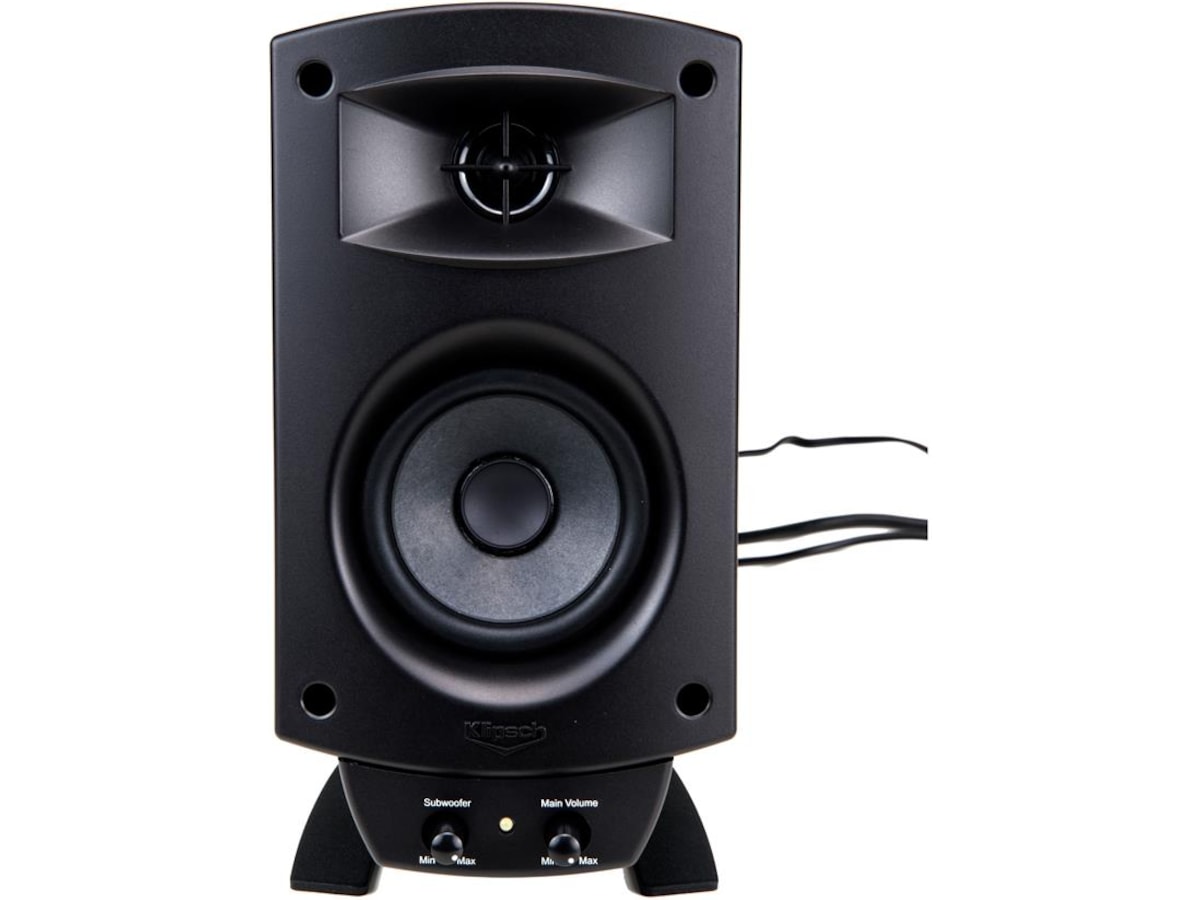 Det, der kendetegner Klipschs unikke lydsignatur, er deres hornhøjttalere. Det unikke ved en hornkonstruktion er, at den har betydeligt højere effektivitet end traditionelle konstruktioner og giver en lydkarakter, der er særdeles dynamisk og underholdende at lytte til. Klipsch Pro Media 2.1 BT satellithøjttaleren er en tovejshøjttaler med en 3" mellemtone. Diskanten føres ind i et Klipsch MicroTractrix-horn, der giver dig mere lyd for hver watt, end de fleste andre traditionelle PC-højttalere giver dig. Hvorfor ikke have engagerende lyd, også fra din computer?