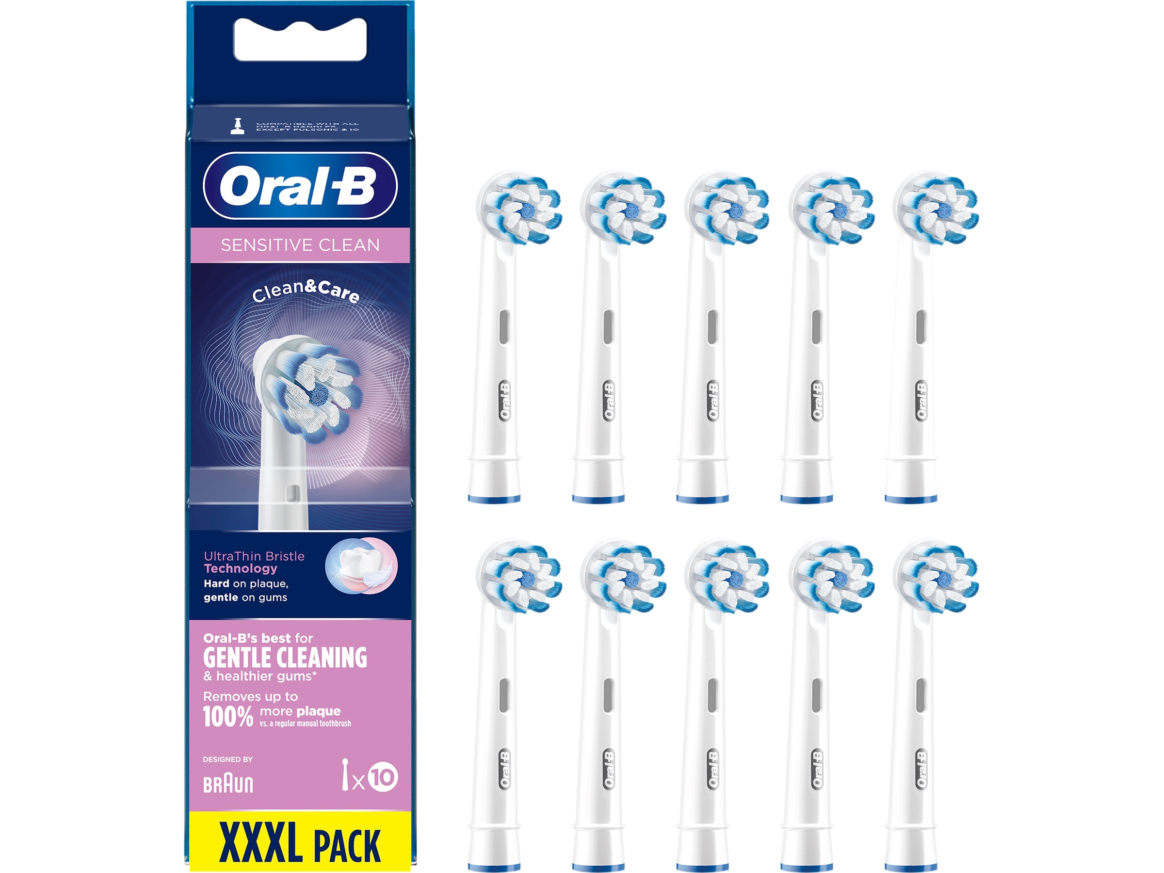 Sensitive Clean er et af Oral-B's førende refill-børstehoveder og har ultratynde børstestrå, der er skånsomme mod tandkødet kombineret med almindelige børstestrå, der er gode mod plak.
