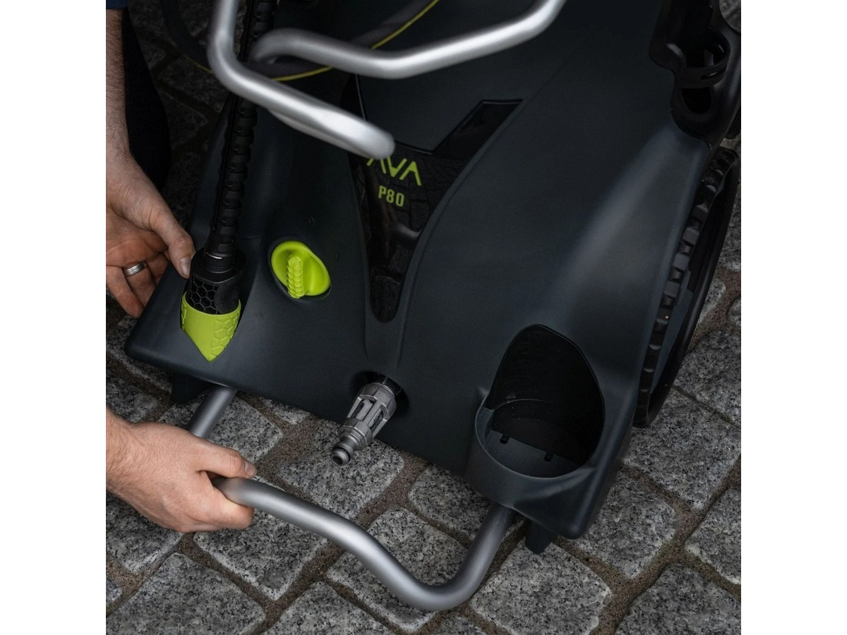 AVA har givet maskinen et lavt tyngdepunkt for ekstra stabilitet. Slangeudtrækket er også placeret langt nede for at undgå risikoen for, at højtryksrenseren vælter. Produktet har en bred underside og sammen med en udtrækkelig støtte foran er den højtryksrenser-branchens mest stabile.