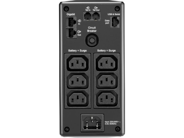 | Strømenhedsfunktioner | Hørlig alarm, LCD-skærm, Automatic Voltage Regulation (AVR), Datalinjebeskyttelse, Overbelastningsbeskyttelse |