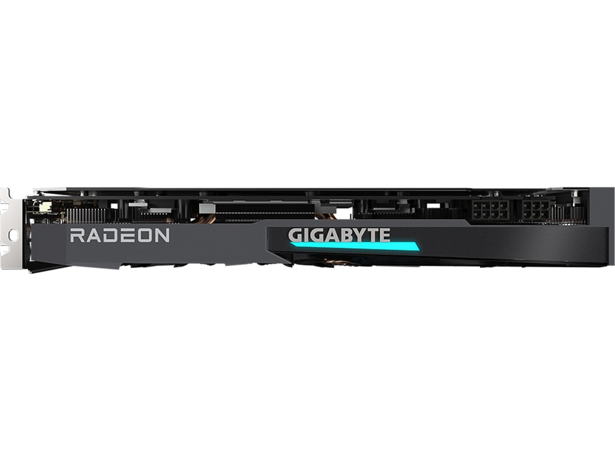 | Video adapter egenskaber | GIGABYTE WindForce 3x, RDNA 2 Architecture, 80 mm Unique-klinge blæserdesign, AORUS Graphics Engine, Metal wraparound-bagplade, 3D Active Fan, RGB Fusion 2.0, Heat Pipe Direct Touch-teknologi, Gigabyte Alternate Spinning |
