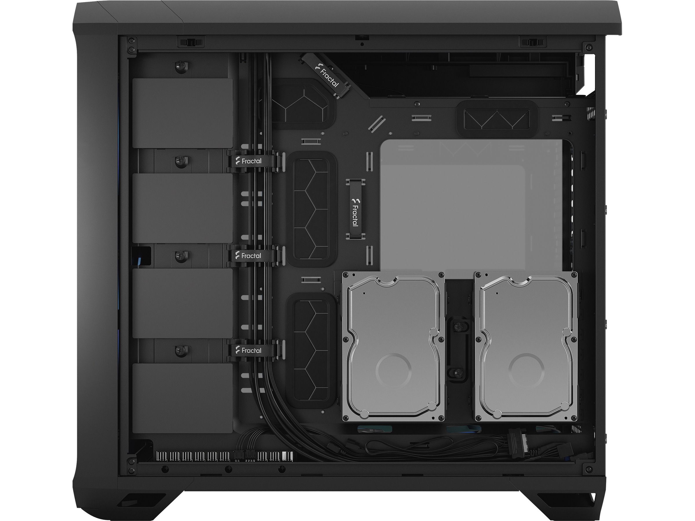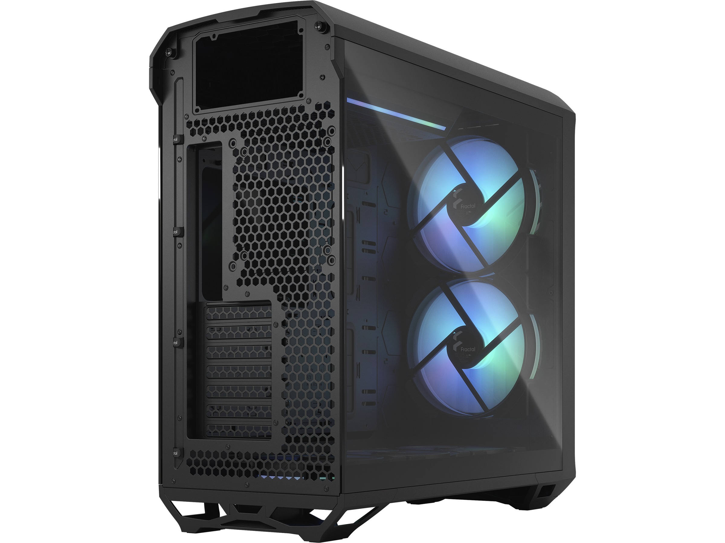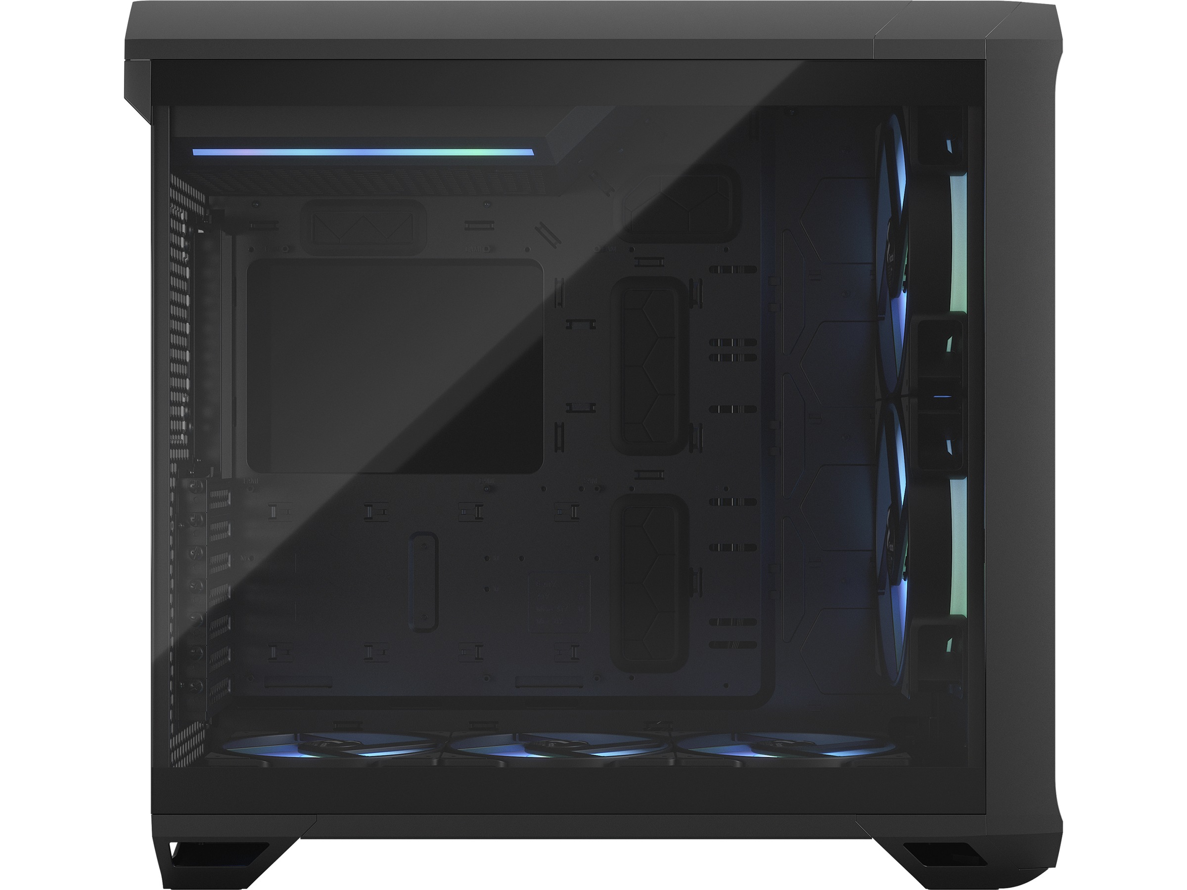 | Kølesystem | Nederst: 140 mm ventilator x 3 / RGB fan, 3 x 120/140 mm fan supported or 2 x 180 mm, Front: 180 mm ventilator x 2 / RGB-blæser , 3 x 120/140 mm blæser understøttet, Bagside: 120/140 mm blæserstativ x 1 |