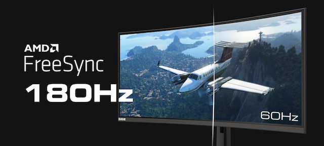 Den 35’’ ultrabrede buede skærm med sit 21:9 (3440x1440) aspektforhold giver dig al den plads, du har brug for til at multitaske effektivt ved brug af én enkelt skærm. Svives PC-skærm har en pixeltæthed på 109.68 PPI, som giver et krystalklart billede, uanset om du spiller, ser film eller arbejder.